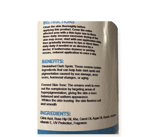 Sunshine is very professional, she answered all my questions was able to suggest which profucts to use. This face cream is super moist it moisturize your skin leaving it feeling very soft, smells very nice does not have a chemical smell like other skin lighthening cream.
